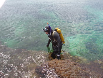 P/S/ Вообще новичкам (кто ни разу не погружался) советую первый раз погрузиться с инструктором в бассейне, чтобы научиться дышать и узнать основные азы во избежания утопления, баротравмы легких или пробитой барабанной перепонки. Просто на тарханкуте большая волна и холодные потоки воды со дня. Я сам первый день немог привыкнуть, пока заходишь, тебя волны болтают- куча сил тратиться. Как результат не можешь выровнять дыхание, а следовательно погружение срывается. Выход из воды с тяжелым аквалангом (а АБМ-1М очень тяжелый) отнимает тоже кучу сил. Короче считаю Тарханкут не самым удачным местом для первого погружения.