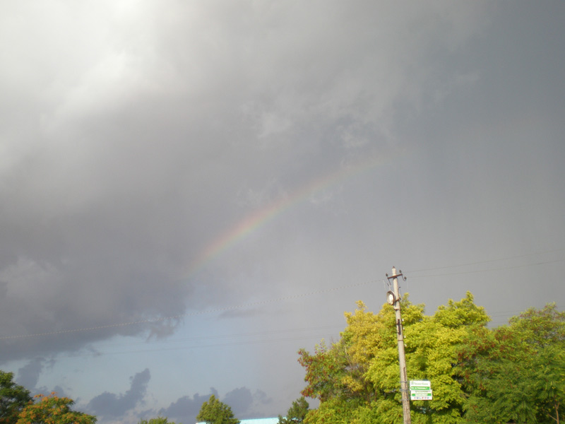 Сегодня в 8-00 на небе появилась радуга (см. фото), а потом пошел дождь.