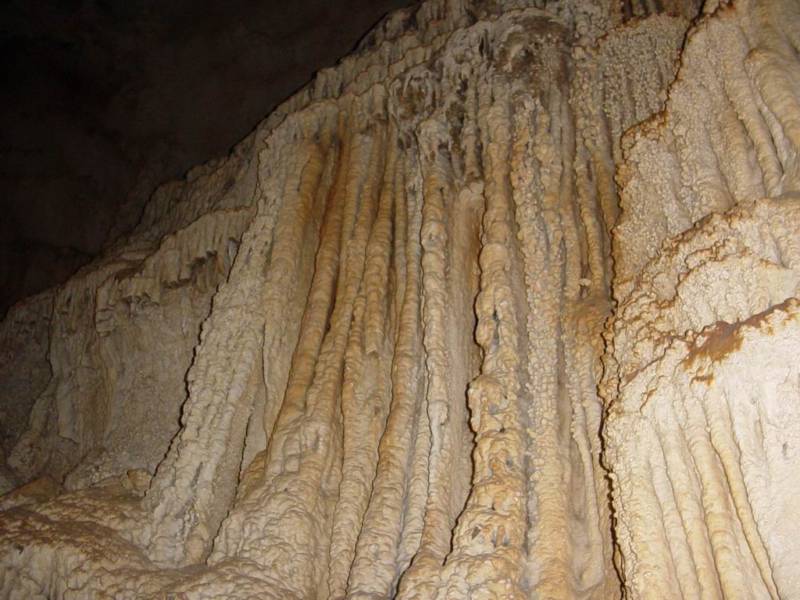 Вообще то сталактиты и сталагмины строго запрещается трогать руками, т.к. попавшие на них от рук бактерии образуют плесень!