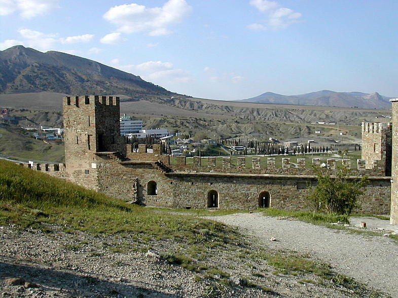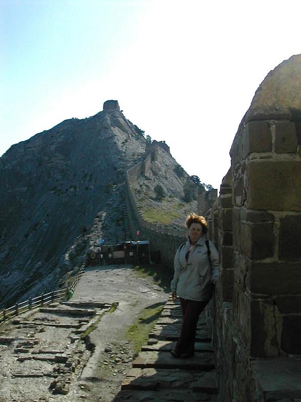 Переезд в Судак запомнился особенно. Во-первых, автобус сделал остановку минут на 15 в Коктебеле. Шоферу позвонили на сотовый и попросили забрать небольшую группу немецких туристов, намеревающихся самостоятельно осмотреть Судакскую Крепость. Панорама бухты и города была восхитительна! Также по просьбе немцев шофер притормозил у вида на мыс Меганом.