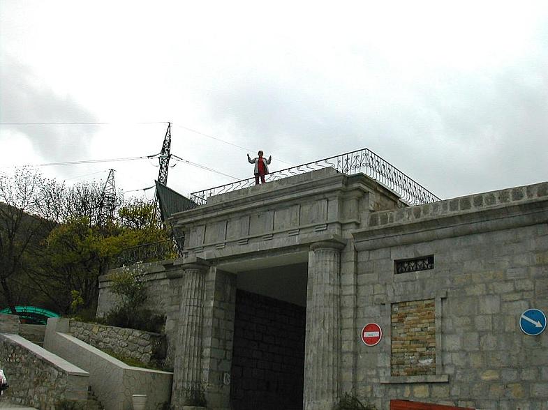 Сам дом выкуплен итальянским ресторатором. На столах хрусталь и свечи, на окнах пыль в палец толщиной. В-общем, издалека это смотрится весьма романтично, а вблизи там делать нечего. Нас хватило минут на 10, понаблюдали за стайкой дельфинов со смотровой площадки и предложили экскурсоводу ехать дальше.
