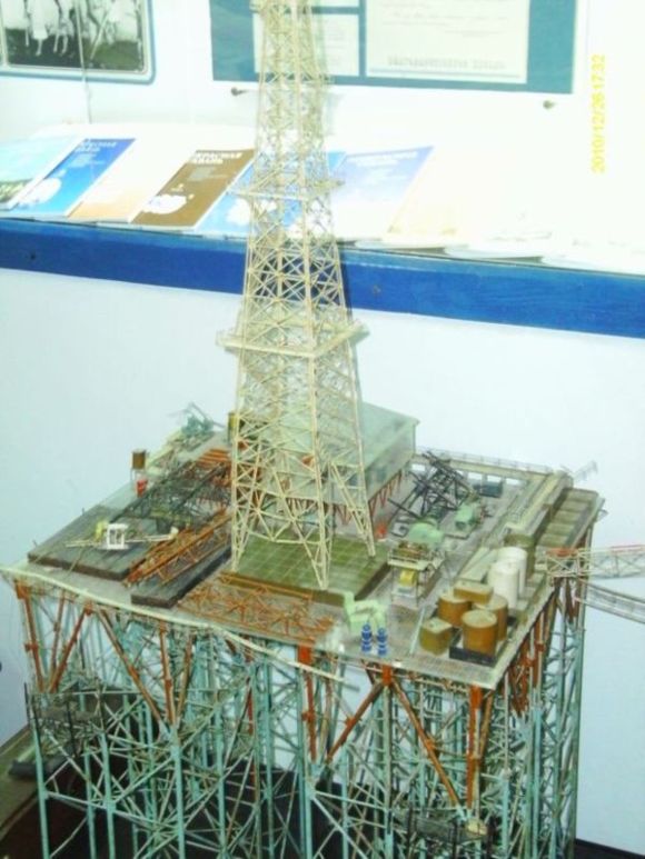 Завершает осмотр зал, посвященный новейшей истории. В ней и водолазное снаряжение, и копии морских стационарных платформ, и макет погибшего в Гонконге судна "Нефтегаз", и фотография платформы на которой разбился вертолет МИ-8.